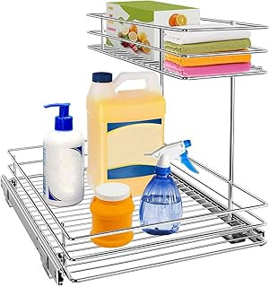 Lynk Professional Under Sink Cabinet Organizer Pull Out Two Tier Sliding Shelf, 11.5w x 18d x 14h-Inch, Chrome
